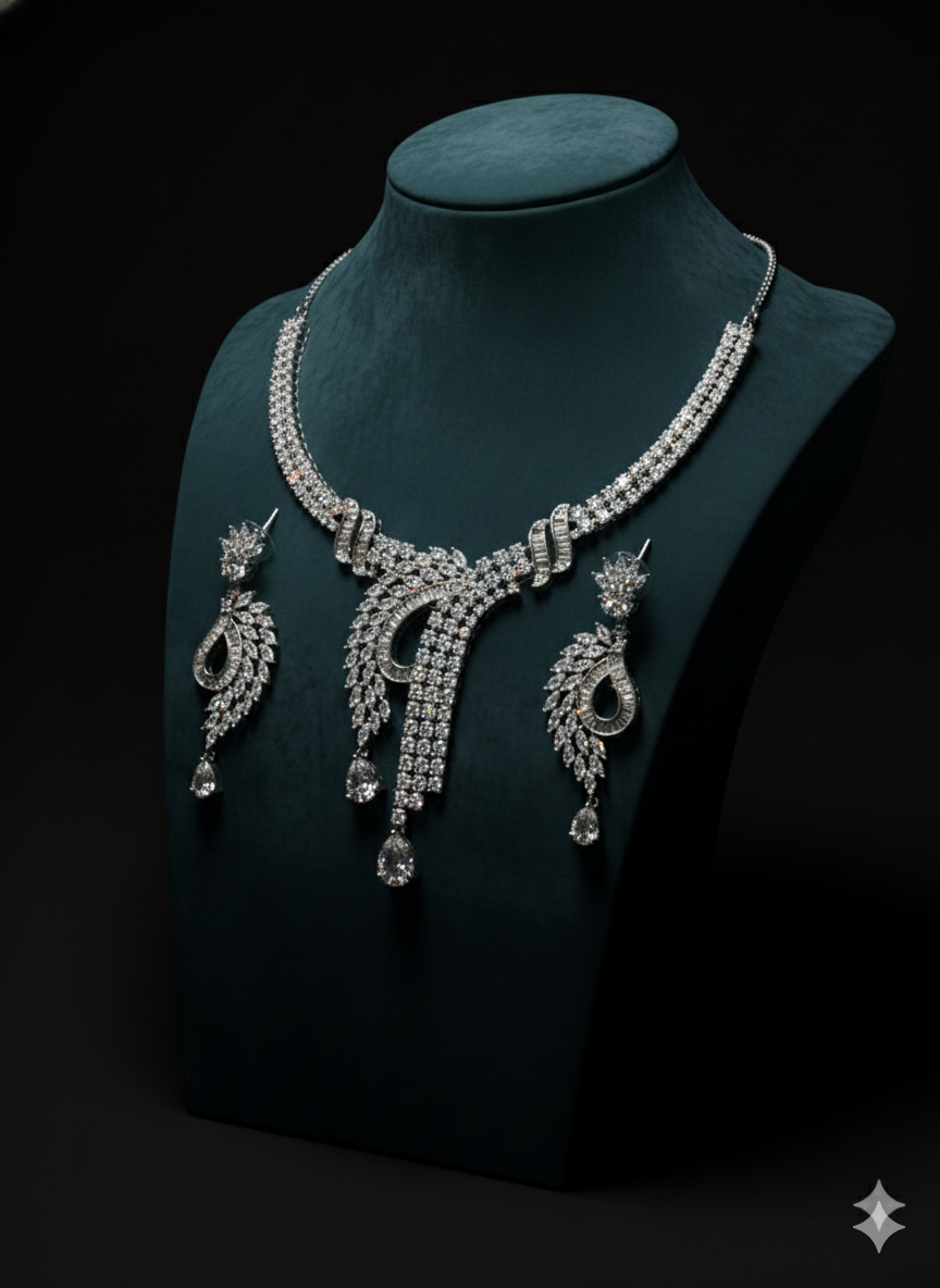 Dewdrop Solitaire Station Necklace Set